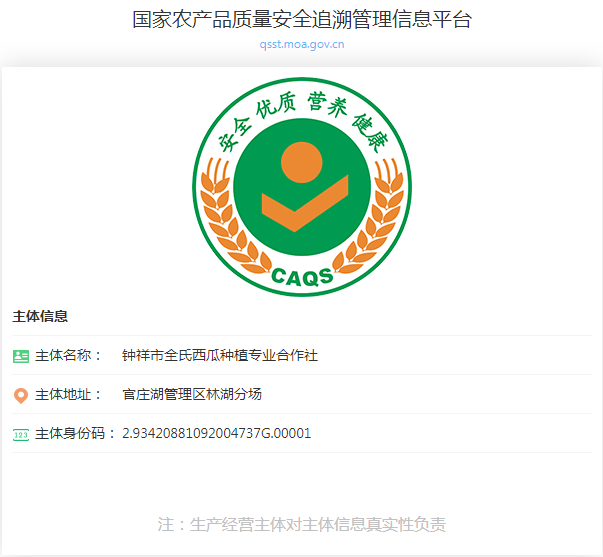 2023年钟祥市全氏西瓜全程溯源 |